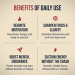 Clinically-dosed ingredients enhance motivation, focus, and mental endurance.
