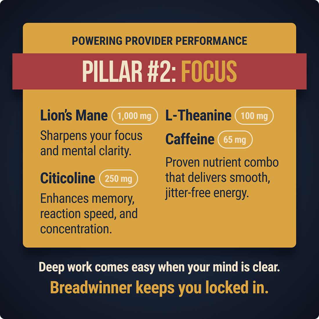 Breadwinner is packed with clinically-backed ingredients proven to sharpen focus, fight fatigue, and