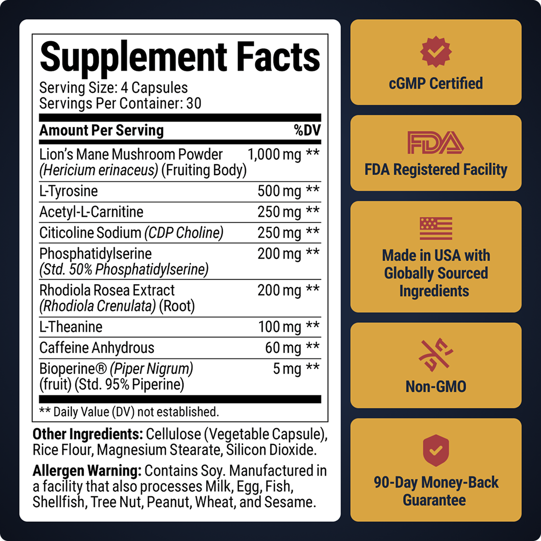 Take 4 capsules each morning with food to fuel your focus, drive, and endurance all day.